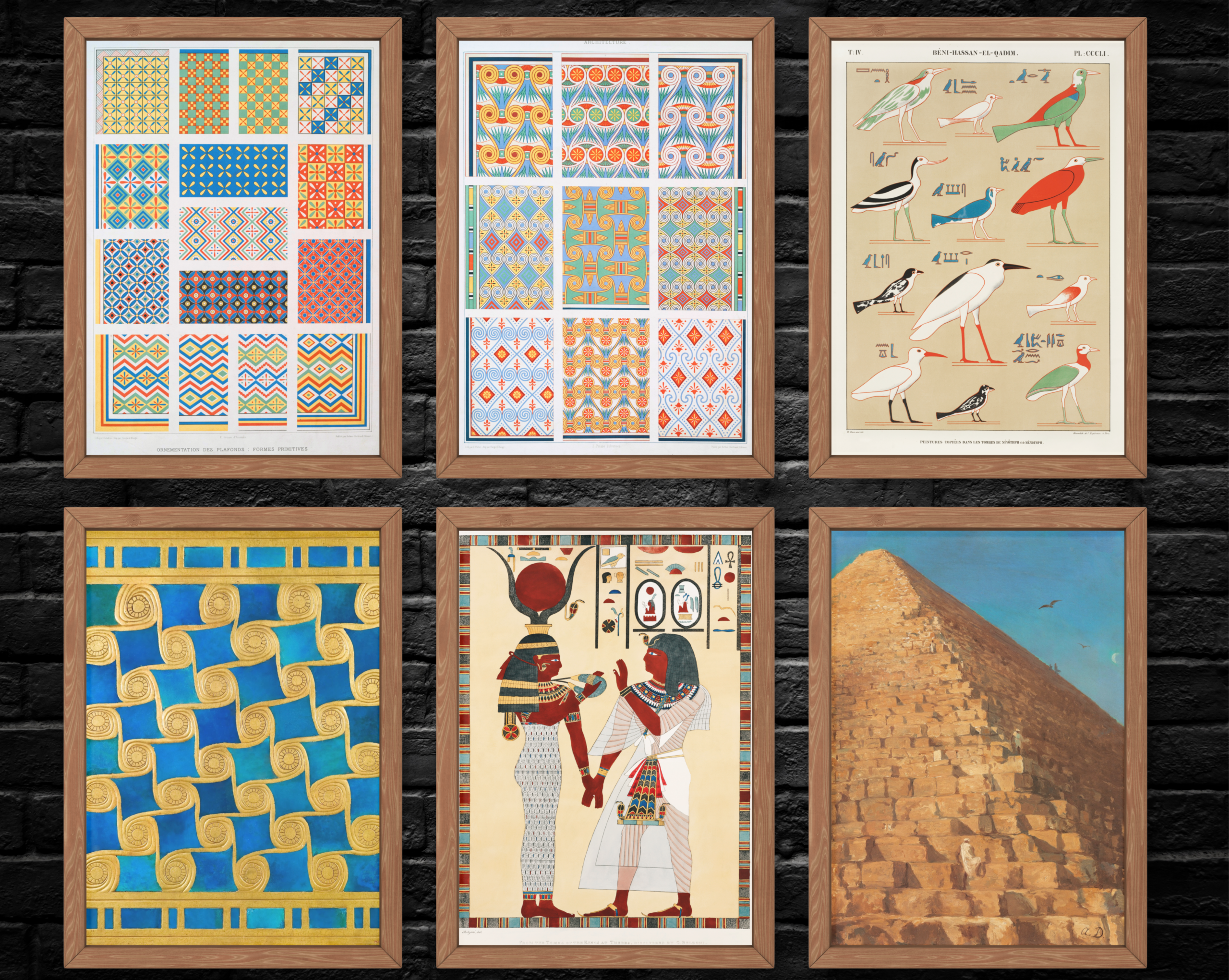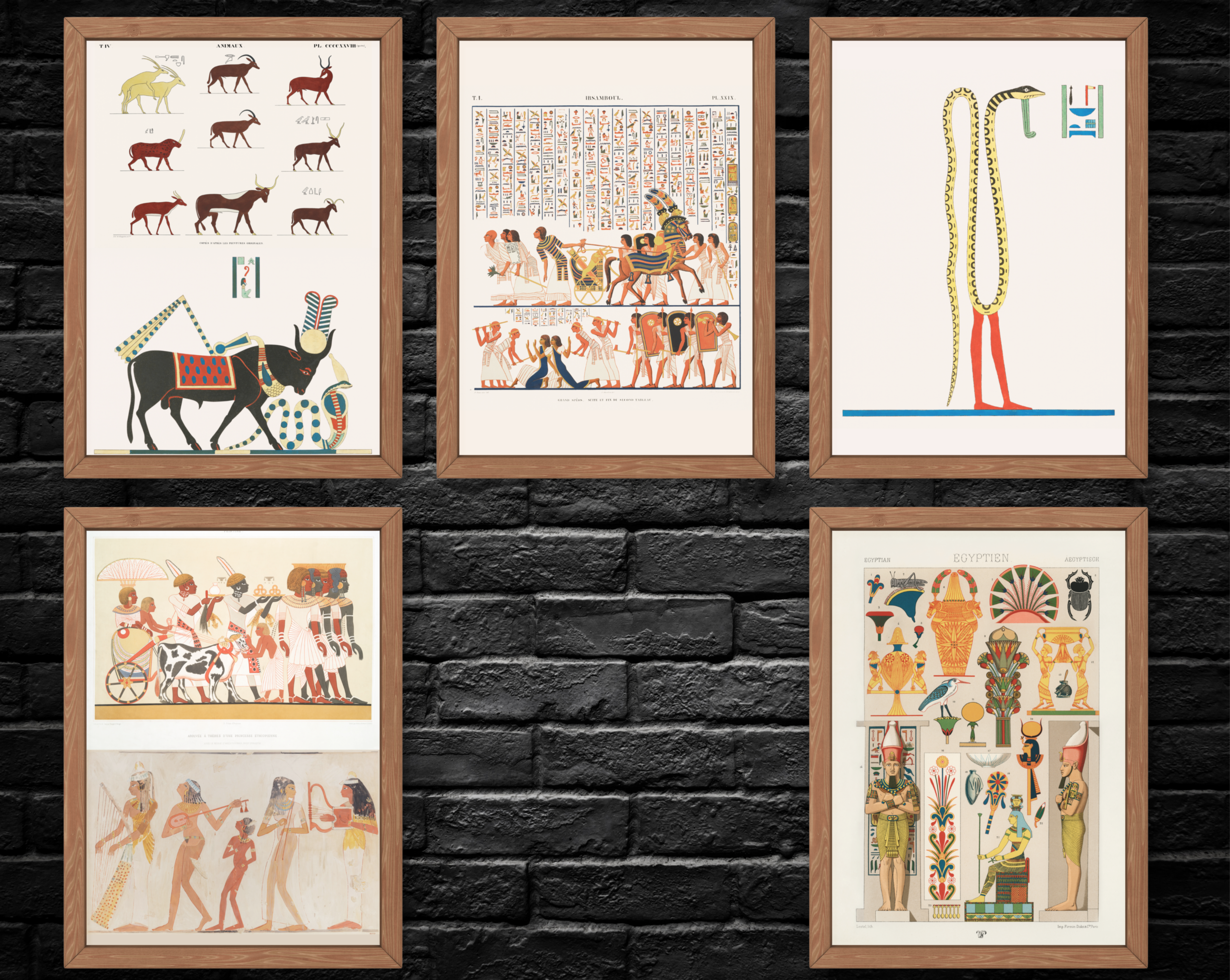 Bring the timeless beauty of ancient civilization into your home with this stunning Ancient Egyptian Art Wall Frame Set. This premium collection features detailed illustrations of hieroglyphics, traditional patterns, sacred animals, royal figures, and iconic pyramid artwork inspired by historical museum prints. Each frame showcases vibrant colors, intricate linework, and authentic vintage aesthetics that create a sophisticated cultural atmosphere for living rooms, offices, study spaces, or galleries.