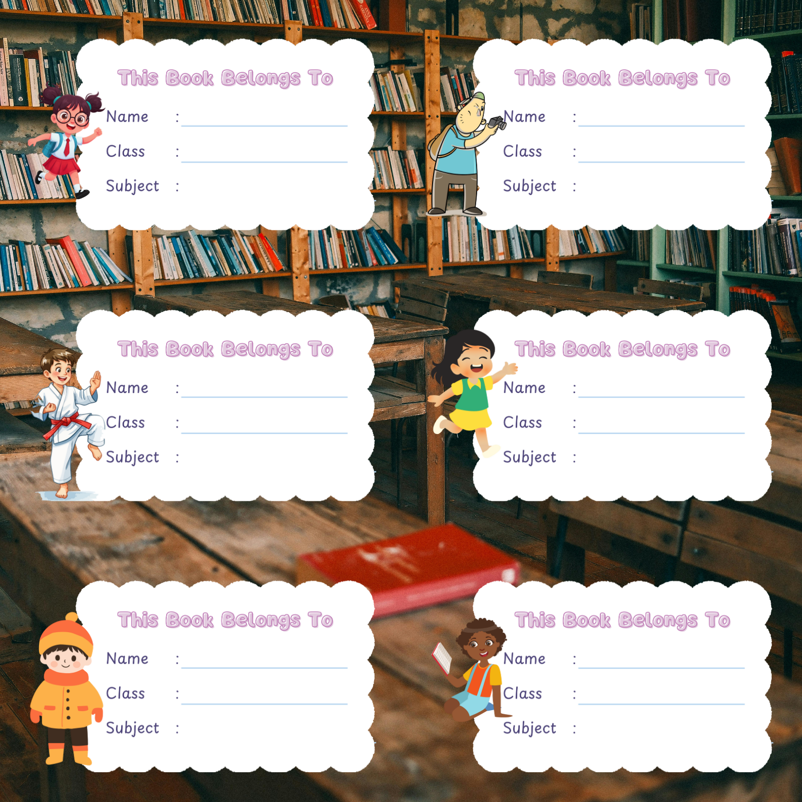 Simply download, print, cut, and stick on any notebook or book cover for instant personalization.