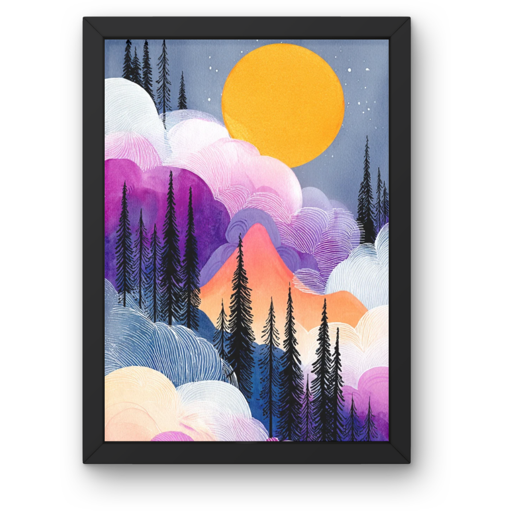 From mystical purple skies to soft vintage clouds and colorful mountain scenes, every artwork in this collection adds a unique aesthetic touch to your home or workspace.