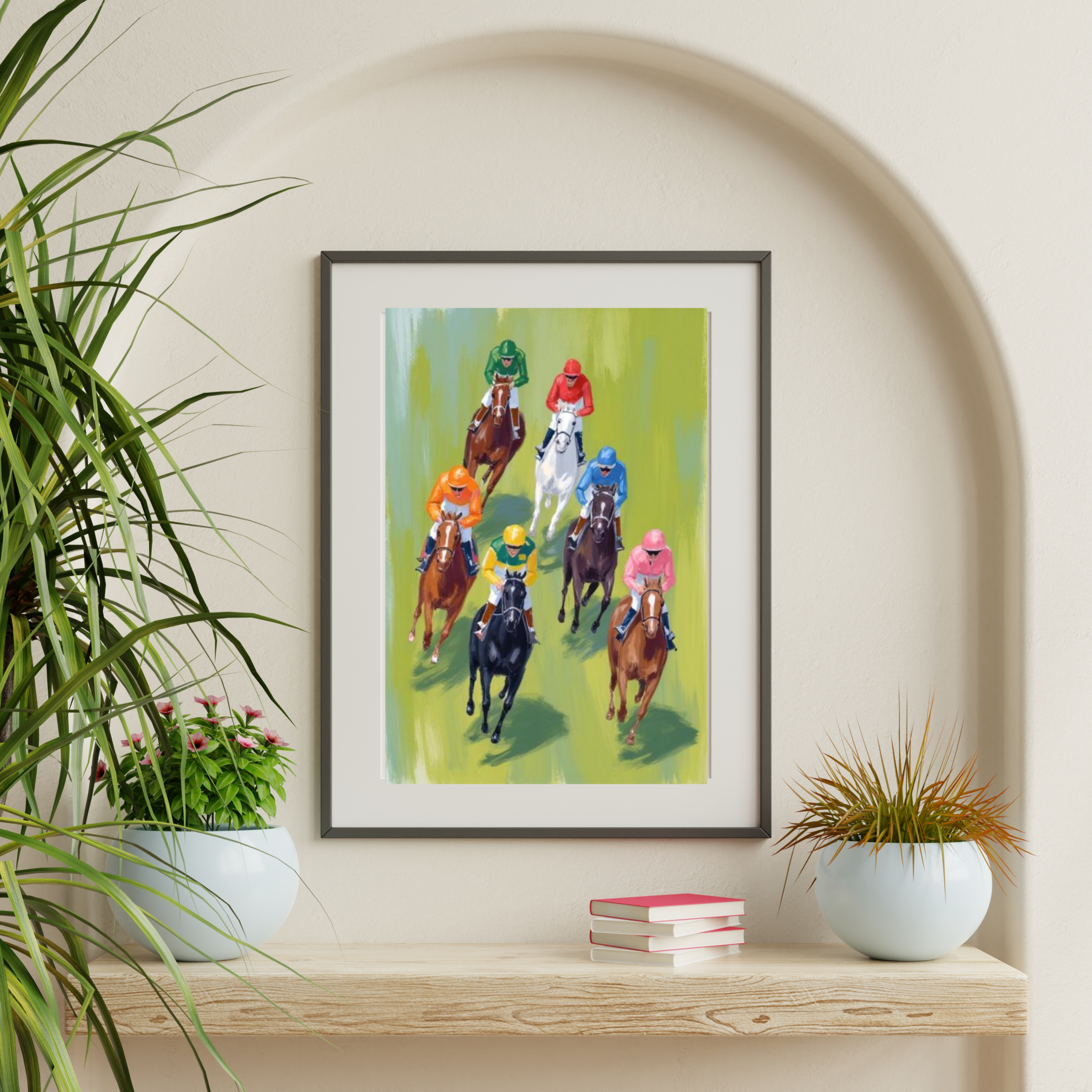 Bring the thrill, energy, and elegance of horse racing into your space with this stunning Vibrant Horse Racing Wall Art Print. This artwork captures the dynamic motion of galloping horses and their riders in a beautifully modern and expressive style. Each brushstroke radiates movement, color, and excitement, making it a true centerpiece for any wall.